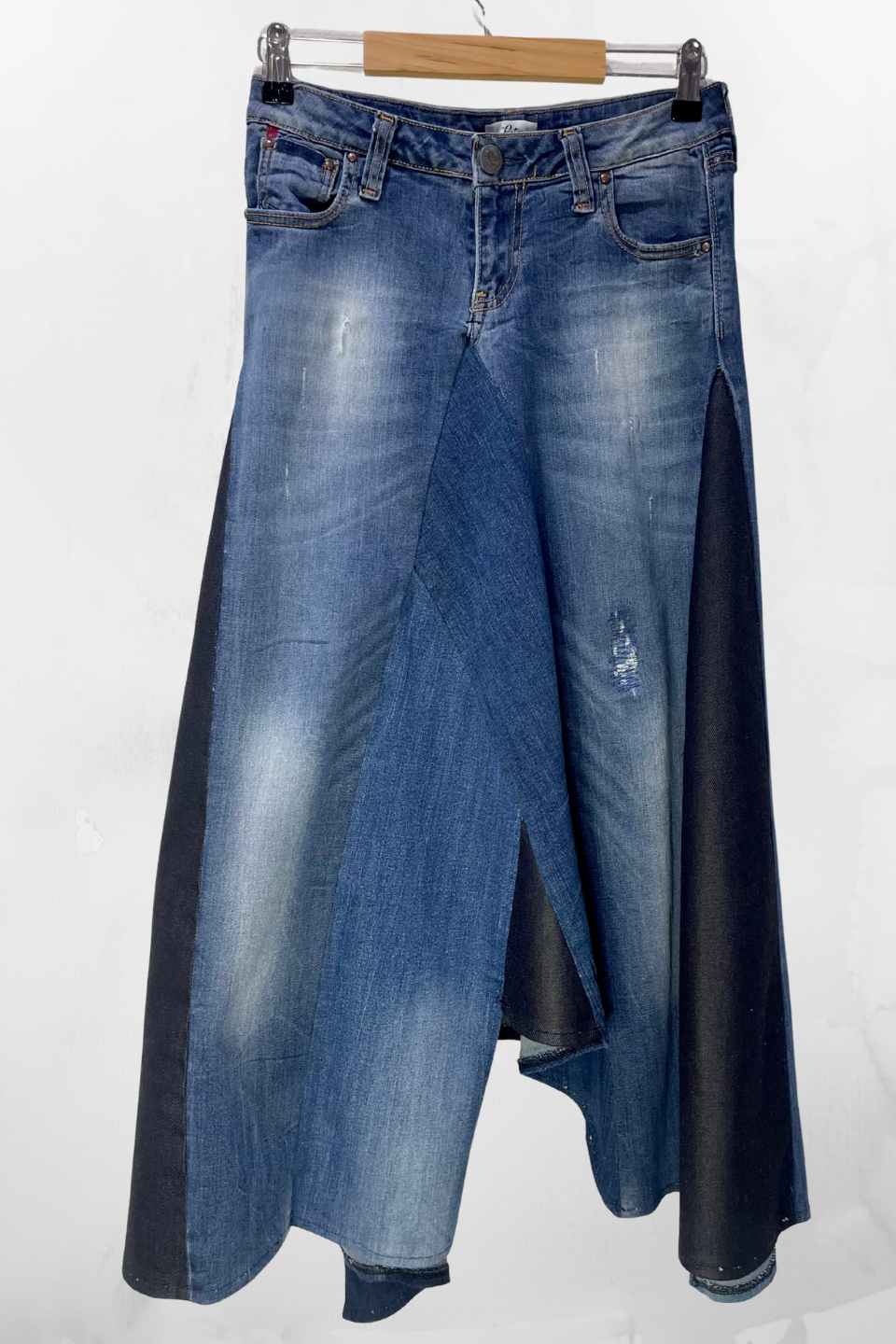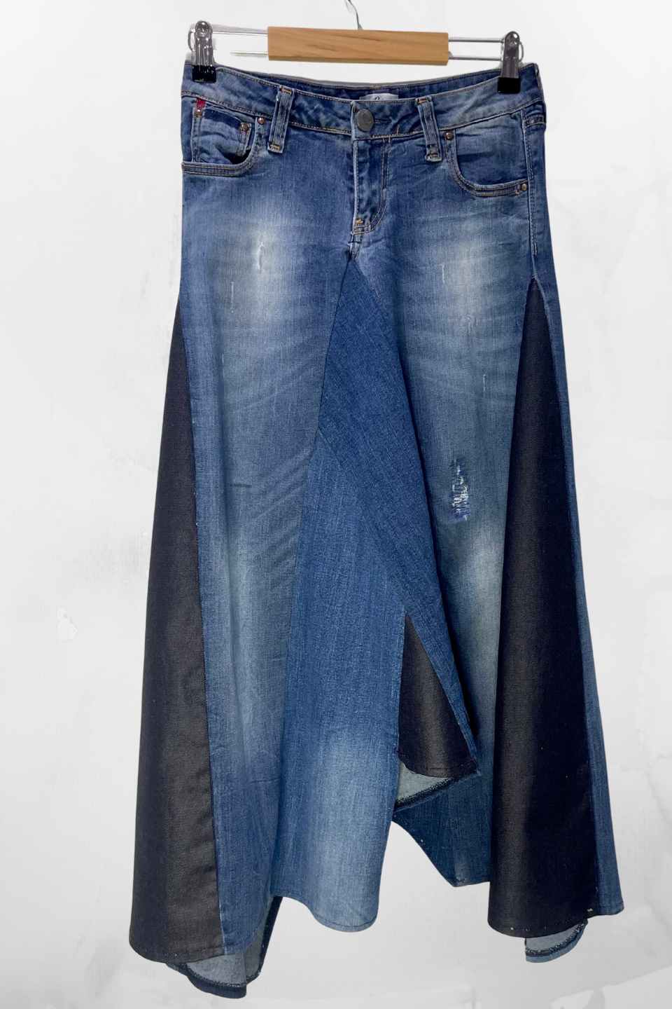 Ova suknja nije samo odjevni predmet – ona je priča o stilu, održivosti i tvojoj osobnosti. Izrađena od recikliranog trapera i oblikovana u unikatni komad ručnog rada, svaka suknja je jedinstvena i neponovljiva.